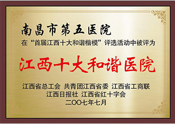 荣获“南昌市‘创卫’先进集体”荣誉称号、荣获“江西省首届十大和谐医院”荣誉称号,五院品牌日益高大